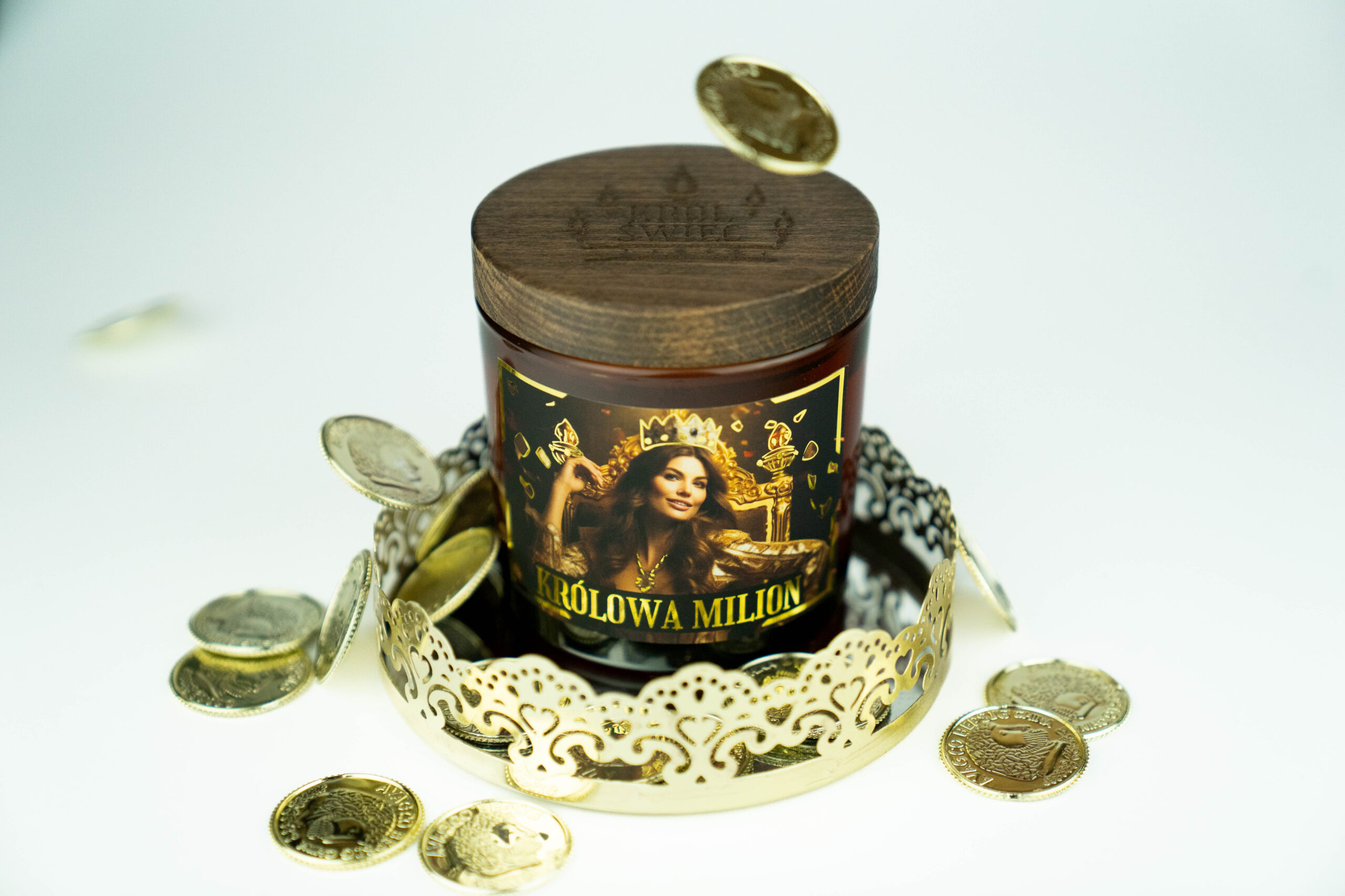 Świeca sojowa Królowa Milion – złoty blask i kobieca siła