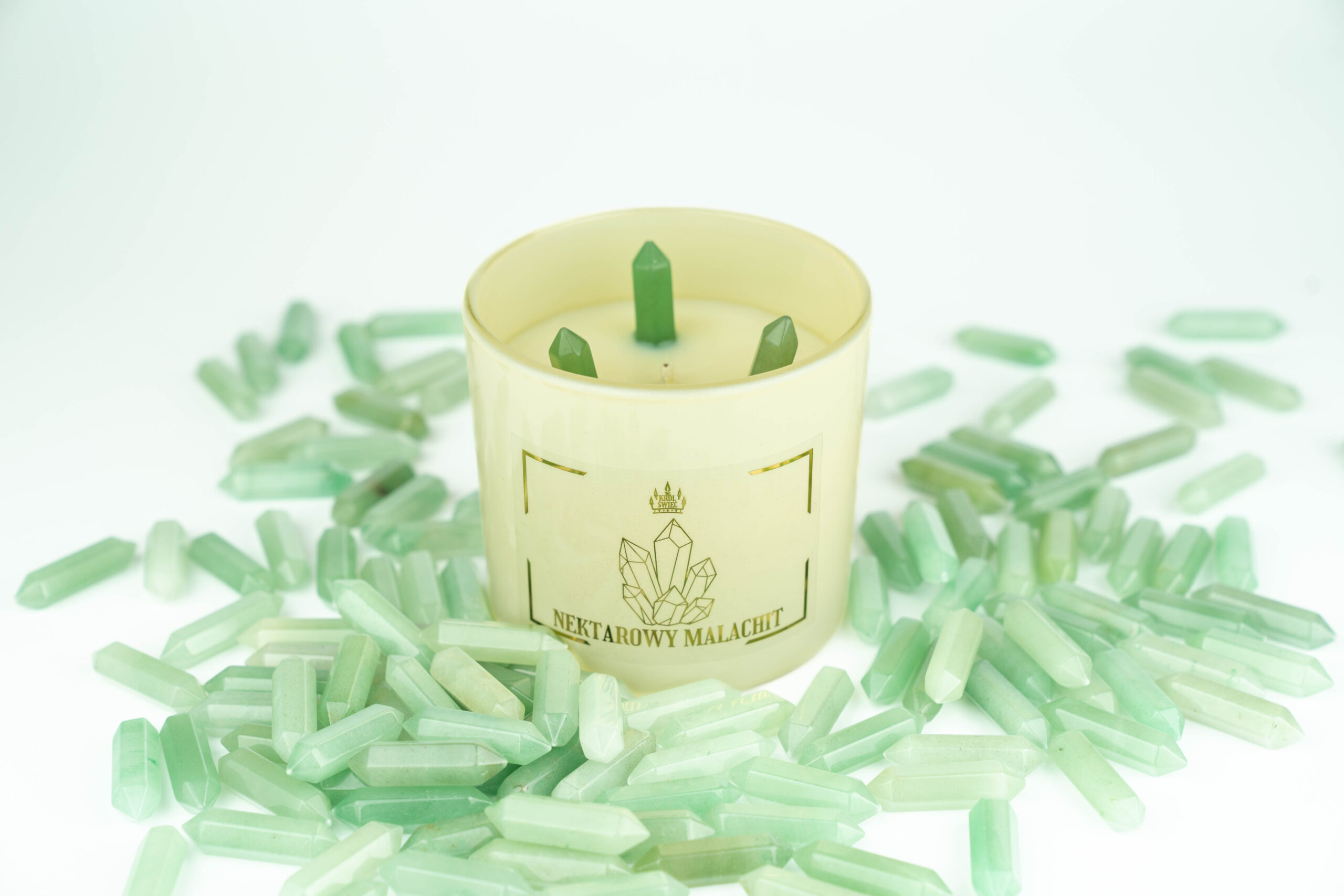 świeca została wzbogacona kamieniami szlachetnymi, które dodają wyjątkowego