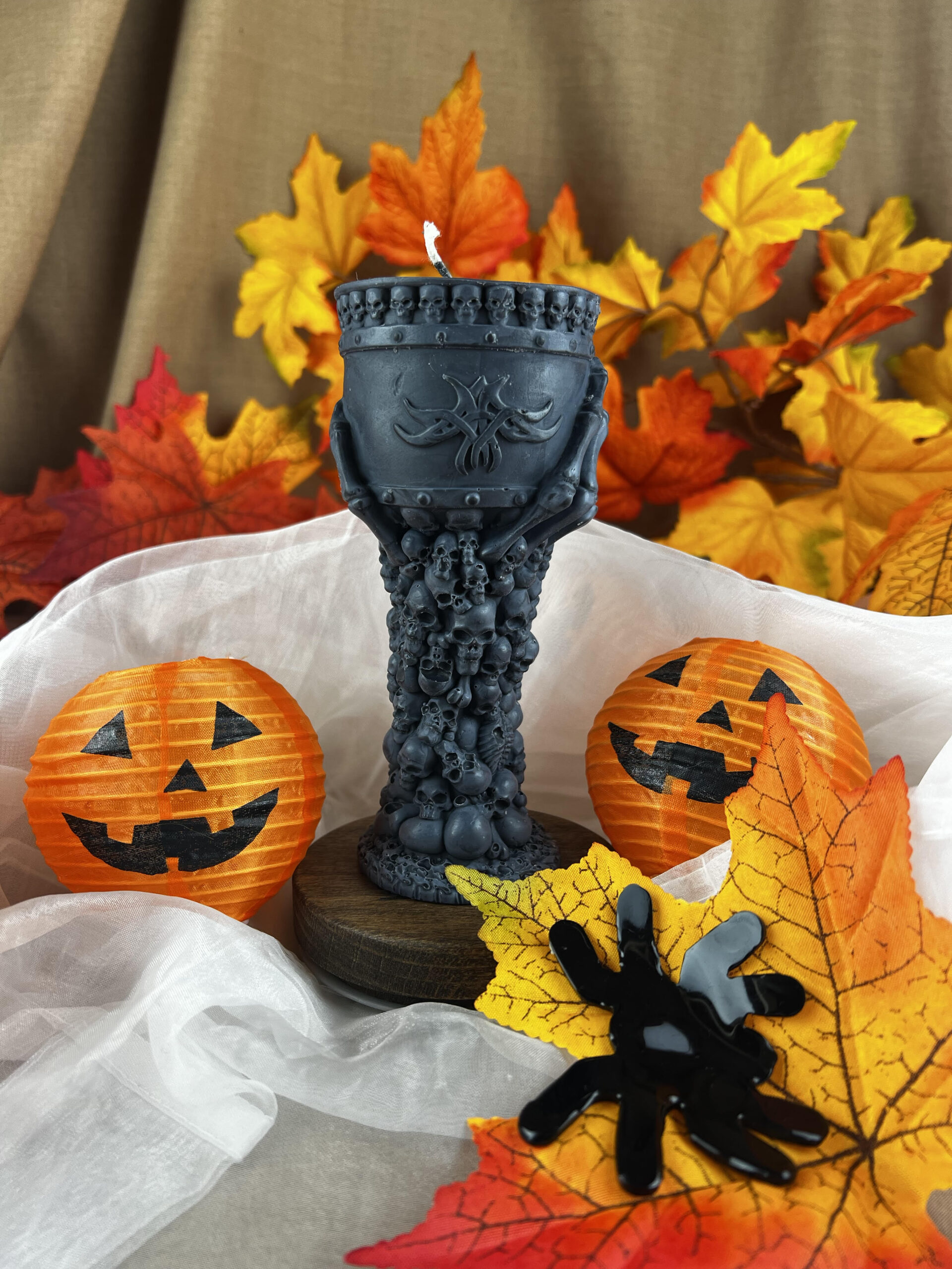 Świeca wolnostojąca „Puchar” to ręcznie wykonana świeca dekoracyjna z naturalnego wosku sojowego, stworzona z myślą o osobach poszukujących wyrazistych i nietuzinkowych dodatków do wnętrz. Co więcej, jej unikalna forma w kształcie pucharu doskonale wpisuje się w stylistykę gothic, halloween, dark romantic oraz victorian, dzięki czemu świetnie uzupełnia aranżacje o mrocznym i prestiżowym charakterze.